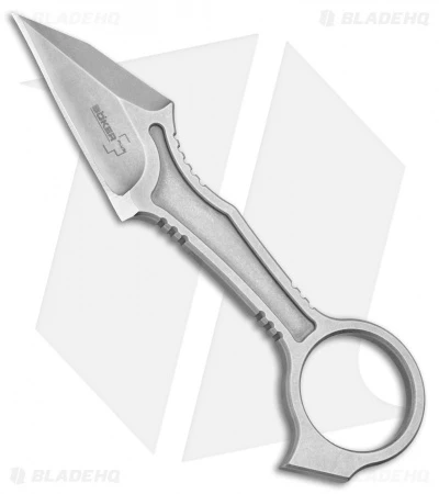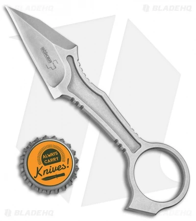 The GITFO offers a sleek minimalist neck knife design from custom knifemaker DJ Urbanovsky. It features a wharncliffe style blade and a pommel ring for versatile carrying options. The knife is made from a single piece of 440C stainless steel with a durable stonewash finish. Item includes a Kydex neck sheath and ball-chain for convenient neck carry.